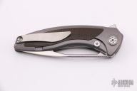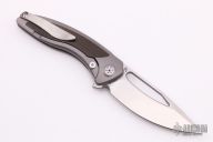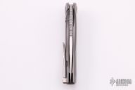 This Void model has green canvas micarta with a bead blasted titanium frame and a satin finished M390 steel blade. The Sharp By Design Void offers a compact and stylish design from celebrated knife-maker Brian Nadeau. It was designed for comfortable EDC use and carry, with a "Void" hole in the blade for finger flick opening and a low profile flipper for more traditional one-hand deployment. The blade provides a nice deep belly with a hollow ground bevel for maximized cutting and slicing performance. These Void models are produced by Reate for an ultra-clean fit and finish. Features: Bohler M390 blade steel for excellent edge retention, corrosion resistance, and a high level of toughness. Finger flick "Void" hole and a low-profile flipper offer one-handed, ambidextrous deployment. Item includes a titanium pocket clip for comfortable tip-up carry. Comes with a zippered case. Excellent condition.
