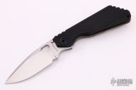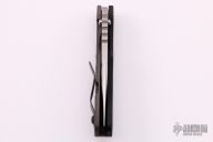 This SNG framelock folder by Mick Strider features a stonewashed blade and a dimple pattern black aluminum and flamed titanium frame and tip up titanium clip. Includes a "Lock Bar Stabilizer" for maximum reverse lock retention. Nice detent, lockup and blade seating. New from maker.