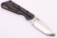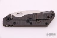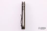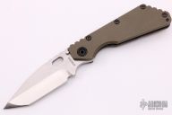 This SMF from Strider Knives features a stonewashed tanto blade and textured green G10 and flamed titanium handle and matching tip up titanium clip. Notches on thumbrest, rear of handle, and lockup. Includes Hinderer "Lock Bar Stabilizer" for maximum reverse lock retention. New condition.