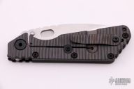 This MSC SMF framelock folder by Mick Strider features a stonewashed blade and a dimple pattern black aluminum and flamed titanium frame and tip up titanium clip. Includes Hinderer "Lock Bar Stabilizer" for maximum reverse lock retention. Nice detent, lockup and blade seating. New from maker.