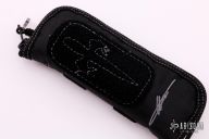 This custom Combat Troodon features a hand-ground hand rub satin finished blade with a 1" sharpened top edge. The handle is hand sculpted black Hefted aluminum with ringed copper hardware and black stainless steel pocket clip. The clip is marked "A. Marfione" and dated 01/2018 and dagger logo is on the clip #003. Comes with a nylon zippered case, original box and papers. Excellent condition.