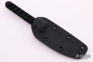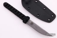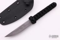 This Fixed Blade by Josh Mason features a hand rub satin finished blade with nice hamon, .140" blade stock, .748" blade depth with full tang construction. The handle has a Turk's head knot as a guard, and a wrapped handle over black stingray skin. Comes with a Kydex sheath. New from maker.