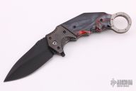 I specialize in large tactical flipper folders. I hand grind every knife blade free hand on hollow grinding wheels of various sizes. My handles are profiled shaped and contoured by hand on the belt sander. My custom pocket clips are hand ground from thick titanium which I designed to ride low in your pocket because I wanted my knives to have a secure fit when being carried. When I design my knives I use straight lines with a futuristic look using high tech materials such as: Lightning strike carbon fiber, titanium, G10 and powdered steels.