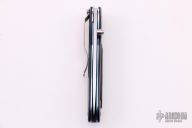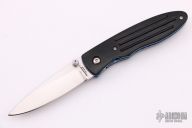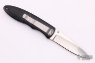 This Mini Piranha by the Late Phil Boguszewski features a hand rub satin finished blade with a single thumbstud. The handle has fluted black linen micarta scales, anodized titanium liners, black linen micarta backspacer, tip down tumbled stainless steel clip. Nice detent, lockup and blade seating. Buttery smooth on phosphor bronze washers. Excellent condition. Comes with zippered case.