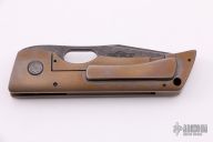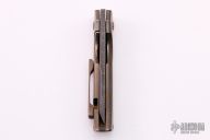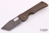 This Mini 56 by Billy Cho Knives features an acid tumbled chisel ground tanto blade with thumbhole. The handle has a green canvas micarta and an anodized titanium frame, bronzed pivot, green canvas micarta backspacer with an anodized titanium tip up clip with hidden screws. Comes with a zippered case and COA dated 1/2019. Nice detent, lockup and blade seating, rides on bearings. Excellent condition.