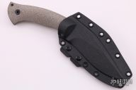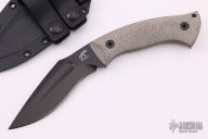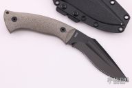 This Kukri features a black blade with a false top edge and a full tang construction.  .235" Blade Stock.  1.385" Blade Depth.  The handle features micarta scales.  Includes a blade kydex sheath and the original box.  Excellent Condition.