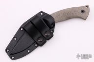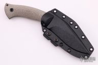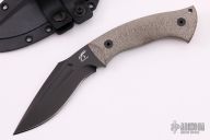 This Kukri features a black blade with a false top edge and a full tang construction. .235" Blade Stock. 1.385" Blade Depth. The handle features micarta scales. Includes a blade kydex sheath and the original box. Excellent Condition.