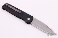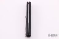 This Scale Release Automatic by Rob Dalton features a bead blasted, drop point blade. The handle is comprised of black anodized aluminum with a titanium tip up clip. Excellent condition.