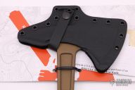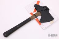 The Knight Hawk is a full tang tomahawk made from 52100 carbon steel that is .265" thick and has a Rockwell hardness of 57-58.  It features 3D contoured black G10 handle scales that are permanently mounted for durability.  The head, from the forward edge to the end of the spike, is 6 3/4" long and has a 2 7/8" cutting edge that is ready for heavy abuse. The spike itself is 2 3/16" and is capable of  penetrating a variety of objects, car locks, windows, doors, tires, etc.  In the outdoors the spike makes a great digging tool, and can be used to drag logs and other tasks.   Includes the original packaging.  Excellent Condition.