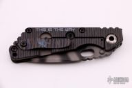 In 1988, he began making specialized knives for use by the military. This turned out to be fortunate turn of events, both for Mick and for the knife using world at large. Mick’s approach was to not get burdened by the weight of past designs. He started with a tabula rasa, a clean slate, informed only by his own experiences and knowledge of what a soldier needed in a knife. The knives he made didn’t look like the hunter-inspired knives seen in most PXs; instead they were almost brutish in their functionality: beefy, solid, and with unbreakable ¼” stock full tangs. These knives were the first indication of his innovative approach: in addition to their utilitarian design, the knives carried a subdued finish and subdued sheaths. No one carrying a Strider knife was going to be spotted because of sunlight glinting off of polished steel or a glossy leather sheath. Soldiers, policemen, and other men going into harm’s way couldn’t buy them fast enough. Mick sampled some good ideas, but made them great. For instance, he was not the first to wrap a knife handle with paracord, but he was the first to do it in a way that was tough enough for sustained infantry use. His knife line grew over the following years to include different varieties of fixed blades, all distinctive and many with specialized uses. But constant in all of them was a disregard for convention, and a desire to try new ideas. An example of this was the Ajax – it featured a very wide blade surface clearly designed to inflict damage. It drew on the weapons carried by Roman legionnaires, yet was modern and usable in the 21stCentury battlefield. Mick also worked on his technical skills, always striving to become better at the physical craft. At the 2002 Blade Show, a group of the best tactical knifemakers in the country decided to compete with each other to produce the most innovative and interesting fixed “battle blade” at the show. Mick’s entry, an incredible integral knife made out of ½” titanium stock with a zippered composite blade, gorgeous handles, and integral guard was the unanimous winner, and effectively retired the competition.