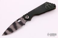 This MSC SNG framelock folder by Mick Strider features a tiger striped blade and a green aluminum and flamed titanium frame and tip up titanium clip. Includes Hinderer "Lock Bar Stabilizer" for maximum reverse lock retention. Nice detent, lockup and blade seating. New from maker.
