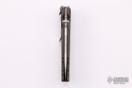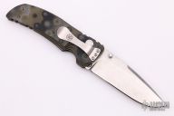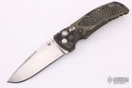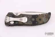 This Hogue/Elishewitz design features a stonewashed blade with dual thumbstuds and notched thumbrest. The handle has milled G-Mascus G10 frame with button lock, safety and tip down carry clip. Includes original box and papers. Excellent condition.