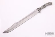 This F-16 by Busse features a Competition finished blade with fullers, .213" blade stock and 1.780" blade depth, full tang construction. The handle has tan/black G-10 scales. New from maker.