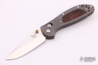 The Griptilian is born of custom knifemaker Mel Pardue's passion for functional designs. You release the creature's ferocity with a thumb stud. At the very heart of the Griptilian is the exclusive AXIS locking mechanism. This modern marvel gives life to a cutting tool like you have never experienced before, especially in a lightweight folder. Rock-solid ambidextrous function is sure to tame the most die-hard of traditionalists. With the 556-1701, Benchmade welcomes in a beautifully upgraded Mini Griptilian combining precision machined titanium alongside wood and brass details. This limited edition is individually numbered and features CPM-20CV stainless steel. CPM-20CV is virtually identical in chemical composition to Benchmade's current M390 steel but is made in the USA by Niagara as opposed to Bohler, which is based Austria. It offers better edge retention but is not quite as tough to sharpen as M390.