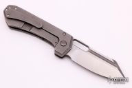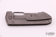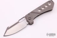 This Leviathan V2 from J.B. Stout features a tumble finished blade with thumbhole. The handle has a milled and tumble finished titanium frame, has a tip up titanium clip. Blade is centered when closed and locks up with no play. Rides on bearings. Excellent condition.
