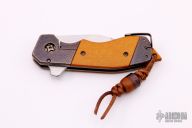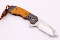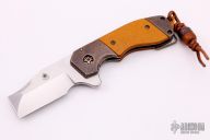 This GL Razel Shorty Flipper by Jon Graham features a satin finished blade with flipper. The handle has an orange peel finished and anodized titanium frame with Westinghouse paper micarta inlays and backspacer, tip up clip. Nice detent, lockup and blade seating. Excellent condition. Comes with matching titanium and micarta bead.