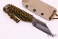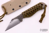 This Compact Seax by GHK features a blade made from a selectively hardened and triple tempered hand forged Nicholson file, notched thumbrest, .233" blade stock and 1.128" blade depth, full tang construction with epoxied cord wrap. Comes with a kydex sheath. New from maker.