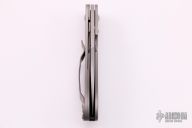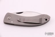 This Small Chinese Folder by the Late Bob Lum features a hand rub satin finished blade with nail nick. The handle has a bead blasted titanium frame, liner and tip up clip, lanyard hole at the butt and a black G-10 backspacer. Comes with a zippered case. Nice detent, lockup and blade seating. Has a few light scuffs and scratches, otherwise excellent condition.