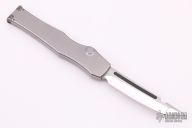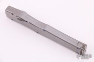 This Marfione custom Halo VI has a mirror polished tanto blade with carbon fiber inlays. The handle is made from double vapor blasted stainless steel with blue titanium hardware, and has no integrated safety on the push button, push button has carbon fiber inlay. The charging handle comes marked with the Marfione Dagger and dated 05/2020. Has carbon fiber inlay in the charging handle and button. Comes with original box, zippered case and COA. Excellent condition. Microtech's Halo VI sets itself apart from previous models with added features and an improved charging handle mechanism. Its upgraded charging handle is built with dual pivoting latches that create a secure seal in the closed position. Dated 05/2020 and s/n 015.