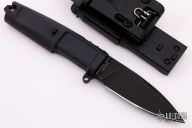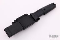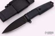 A truly versatile back up with striking combat qualities. The leaf blade is characterized by a wide flat grinding, with a narrow whetting angle that makes it particularly sharp. Has Full rubber handle. Knife includes molded sheath with belt clip. Excellent condition. Includes original box and papers. Blade Steel: N690