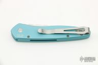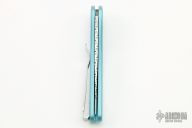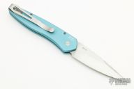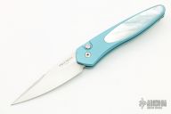 This auto features a stonewashed spear point blade with fileworked spine. The handle is blue aluminum with gold lip pearl inlay and a tip up black SS clip. Comes with a Pro-Tech box and papers. "PR7 #1211" on frame, excellent condition. Blade Steel: S35VN.