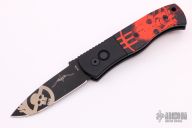 This CQC7 Auto by Pro-tech knives features a black drop point blade with notched thumbrest. The handle has a black aluminum and G-10 frame, tip up black stainless steel clip. PR5 #404.  Includes the original box and papers.  Excellent condition.