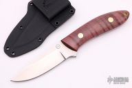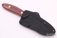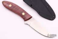This K-30 Whitetail Skinner by Dozier Knives features a satin finished blade, .137" blade stock and 1.095" blade depth, full tang construction. The handle has dyed curly oak scales with brass pins and lanyard hole. Comes with kydex sheath with belt clip. New from maker.