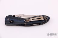 This 930 Kulgera from Benchmade features a satin finish spear point blade with swedge and dual thumb studs. The handle is comprised of blue and black G10 scales over black steel liners and stand-offs. Stainless steel tip up clip is reversible for left or right hand carry. Excellent Condition. Includes the original box and papers.