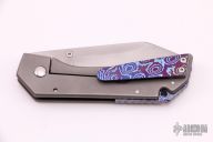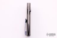 This framelock by Jody Muller features a matte finished blade with single mokuti thumbstud. The handle has a bead blast finished titanium frame with mokuti tip up clip and backspacer. Nice detent, lockup and blade seating. Has some scuffs on the frame, otherwise excellent condition.