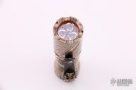 Light Engine: Nichia 219c 5000K 90DRI+ Driver: S-FET 4-Modes + Turbo 30s w/ Memory Peak Output: 1450LM+ OTF @7.5A Lens: 20.00mm Sapphire Crystal (AR Coated) 14 1.5*6mm Trits Fluorosilicone O-ring AS-568-018 Recessed 16mm Silicone Rubber Boot Sinners Crown (Crenellated Bezel) 208 - Steel Flame Titanium Pocket Clip Dimensions: 1" x 3.1" Weight: 145g (without batteries). Has some scratches, otherwise excellent condition.