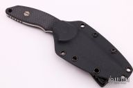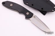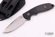 The Spanto ground FXM from Hinderer Knives is patterned after the ever popular XM-18 3.5″ folding knife. The design is well suited for a wide range of cutting chores and environments. The ergonomic handle shape and single guard provide security as well as multiple grip options. Stonewashed blade with notched thumbrest, .164" blade stock and 1.130" blade depth, full tang construction, black G-10 scales. Knife comes with a kydex sheath and Tek Lok. Excellent Condition.
