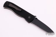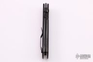This Super CQC-7 by Emerson Knives is #3863, it has a black chisel ground tanto partially serrated blade with thumb disc and wave feature. Handle is black G10 over titanium liners, black G-10 backspacer, matte black stainless steel tip up clip, and lanyard hole. Excellent condition. Comes with original box and papers.
