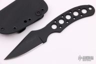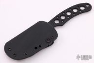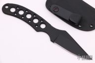 This Legionaire Neck Knife from Crawford Knives features a DLC coated blade with swedge, notched thumb rest and deep choil for secure grip. The handle as been drilled out to reduce weight for ease of carry. Includes neck sheath with optional belt clip and ball chain. New from maker.