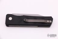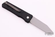 This scale release automatic from Rob Dalton features a bead blast tanto style chisel ground blade. The handle is comprised of an anodized and milled aluminum frame numbered 2083. Bead blasted tip up clip. Excellent condition.
