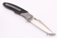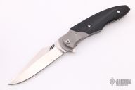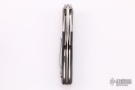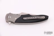 This Mini Lincoln by Wolfgang Loerchner and Patriot Bladewerks features a satin finish clip point blade with flipper. The handle is comprised of bead blasted titanium bolsters, contoured black G-10 scales, satin finished titanium liners and backspacer. Comes with original box. Nice detent, lockup and blade seating. Excellent condition.