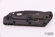 This SMF framelock folder by Mick Strider features a black spear point blade and a dimple pattern black aluminum and flamed titanium frame and tip up titanium clip. Includes a "Lock Bar Stabilizer" for maximum reverse lock retention. Nice detent, lockup and blade seating. Has a couple light scuffs, New from maker.