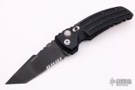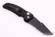 This EX-A01 by Hogue Knives is an Allen Elishewitz design, it features a black tanto partially serrated 154CM blade with notched thumbrest. The handle is black aluminum, tip up or down reversible black stainless steel clip. Has safety. Comes with Hogue box and papers. Excellent condition.