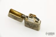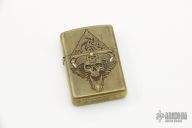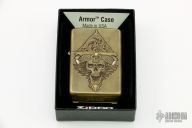 Custom Skull Motif armor Zippo lighter by Andrew Gonzales Artistry featuring pure gold and silver inlay accents. New from maker.