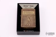 Custom one of a kind Led Zeppelin Zippo armor light by Andrew Gonzales Artistry featuring Jimmy Page with his Dragon Bell bottoms and Les Paul standard. Original BOx included. New from maker.