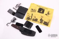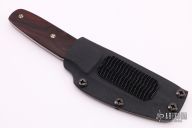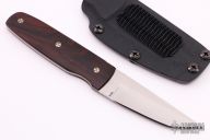 This Aikuchi by Bud Nealy features a hand rub satin finished tanto style blade with notched thumb and finger rests, .104" blade stock and 1.046" blade depth. The handle is comprised of cocobolo scales over full tang construction. Includes original paperwork and MCS Sheath system. Excellent condition.