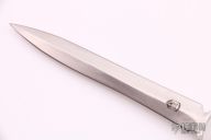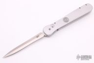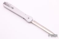 This Spartan by Rob Dalton features a double-edged satin finished blade and an aluminum frame. Bead blast titanium clip, tip up carry. Powerful coil spring action. Excellent Condition.