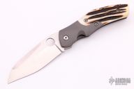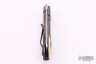 This Myrtle by Deviant Blades features a satin finished blade with thumbhole. The handle has a titanium bolster and lockside, a stage scales complimented by a tip up anodized titanium clip and backspacer. Includes a padded zippered case.  Excellent condition.