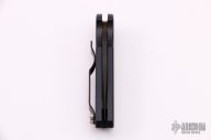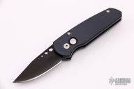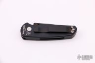 This Runt 2 FPR Side Opening Auto (#253) from Pro-Tech has a black finished 154-CM clip/ spear point blade with milled holes. Handle is black anodized aluminum with black stainless steel tip up clip. Typical Pro-tech lighting fast action with great lockup and blade seating. Excellent condition.
