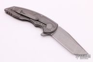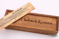 From Hoback Knives: The A8 is the down-home, hard-work inspired folder. We built this knife to be at home in your pocket, so it’s always where you need it and you don't have to think about it. It just plain works. We took the A10 folder and scaled it down to be much more pocket-friendly, while still being large and in charge! The A8 still sports a 3.25” long blade like its A10 big brother, but it’s much narrower and slides into the pocket with ease. And anytime you see the word “Slimline,” you know the knife will be lighter, faster, and thinner for even more ease of carrying. It will boast the same strength and precision engineering you have come to expect from Jake Hoback Knives. SPECIFICATIONS: Blade: CPM-20CV, 3.25 Length, .1875 Thickness, stonewash finish Frame: Grade 38 Titanium, .1875 Thickness, Stonewash blade finish. Closed Length: 4.66" Open Length: 7.796" Weight: 4.7oz. Other Features: Pivot Thrust Bearings HRD (Hoback Roller Detent) Engineered Internal Lightening Pockets (less weight, same strength) Standard Sizes on all Screws for Ease of Replacement Hardened Steel Bearing Races. Comes in the original wooden box with certificate of authenticity and allen tools needed to disassemble knife.