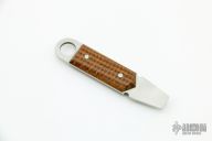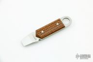 This Knife Pick/Prybar from Jared Oeser features a satin finish and thunderstorm Kevlar scales with a lanyard hole. Excellent condition.