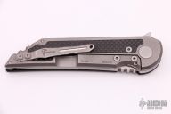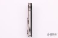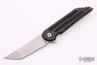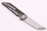 This UHEP frame-lock flipper by Jake Hoback has a stonewashed upswept/tanto blade, notched thumbrest and flipper. CBP caged bearing pivot. Handle is carbon fiber and titanium with carbon fiber inlay on the lockside, stonewashed titanium tip up clip and backspacer, clip is reversible left or right. This knife has an adjustable detent. Nice detent, lockup, and blade seating, and flips like a boss. Knife is in excellent condition and shows no signs of use. Comes in original box with COA. Excellent condition.
