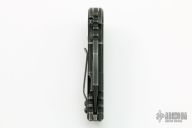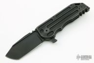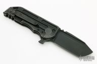 This Black Stallion WarHorse is a collaboration between Jake Hoback Knives and Alphahunter Tactical Design. It features a black Fallout finished blade with fullers, notched thumb rest and flipper. CPM-Cru-Wear blade steel. The handle is comprised of black Fallout finished machined titanium over a black DLC titanium floating backspacer. Titanium tip up clip and lanyard hole in pommel. Includes allen key set, maker's card and padded and zippered case. Excellent condition.