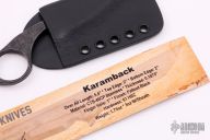 "I’ve wanted to create a small pocket-carry, easy-to-conceal Karambit-style knife for quite a while, but alas... folders have taken up most of my life for the last few years. But now that I have been able to establish a process for making folders that is efficient, I have been able to re-dedicate myself to more fixed blade work! Now we have the next fixed blade in our lineup. The Karamback (ya, I know you get the joke by now.) Excellent condition.