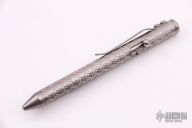 This unique bolt-action pen is made completely of titanium with the only exceptions being the ink cartridge, the spring, and the O-ring. Pen is new from Mr. Fellhoelter and comes in original plastic storage tube.