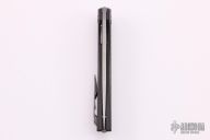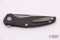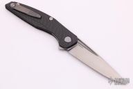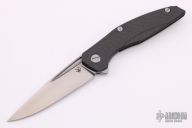 This model 111 flipper by Shirogorov Knives has a flat ground blade with flipper. Handle is contoured/textured carbon fiber with a titanium tip up clip and backspacer, stainless steel single liner. Dead center blade seating, excellent detent and lockup, and flips superbly. Comes with a zippered case. Knife is in excellent condition.
